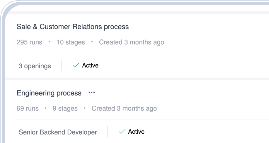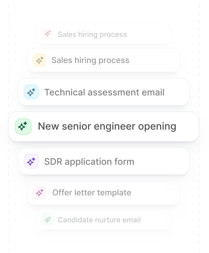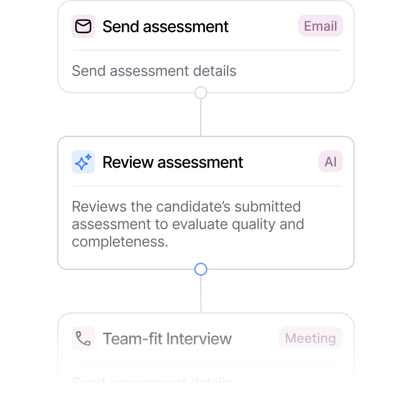 Design workflows with automated reviews, emails, AI-powered steps, and more that represent your hiring process that run your hiring process on autopilot.
