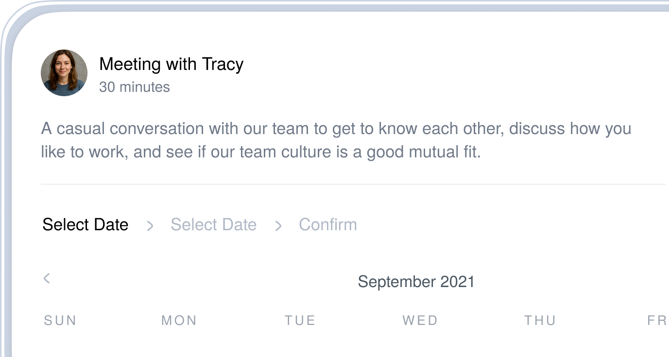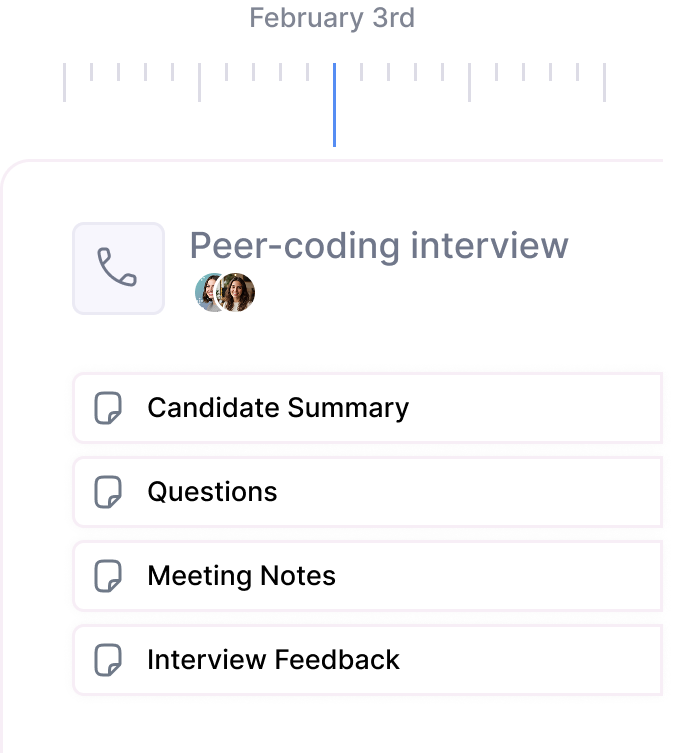 Streamline your interview process with self-scheduling links, seamless calendar integration, and AI-powered meeting notes that give you the power to conduct perfectly coordinated interviews with any candidate, anywhere