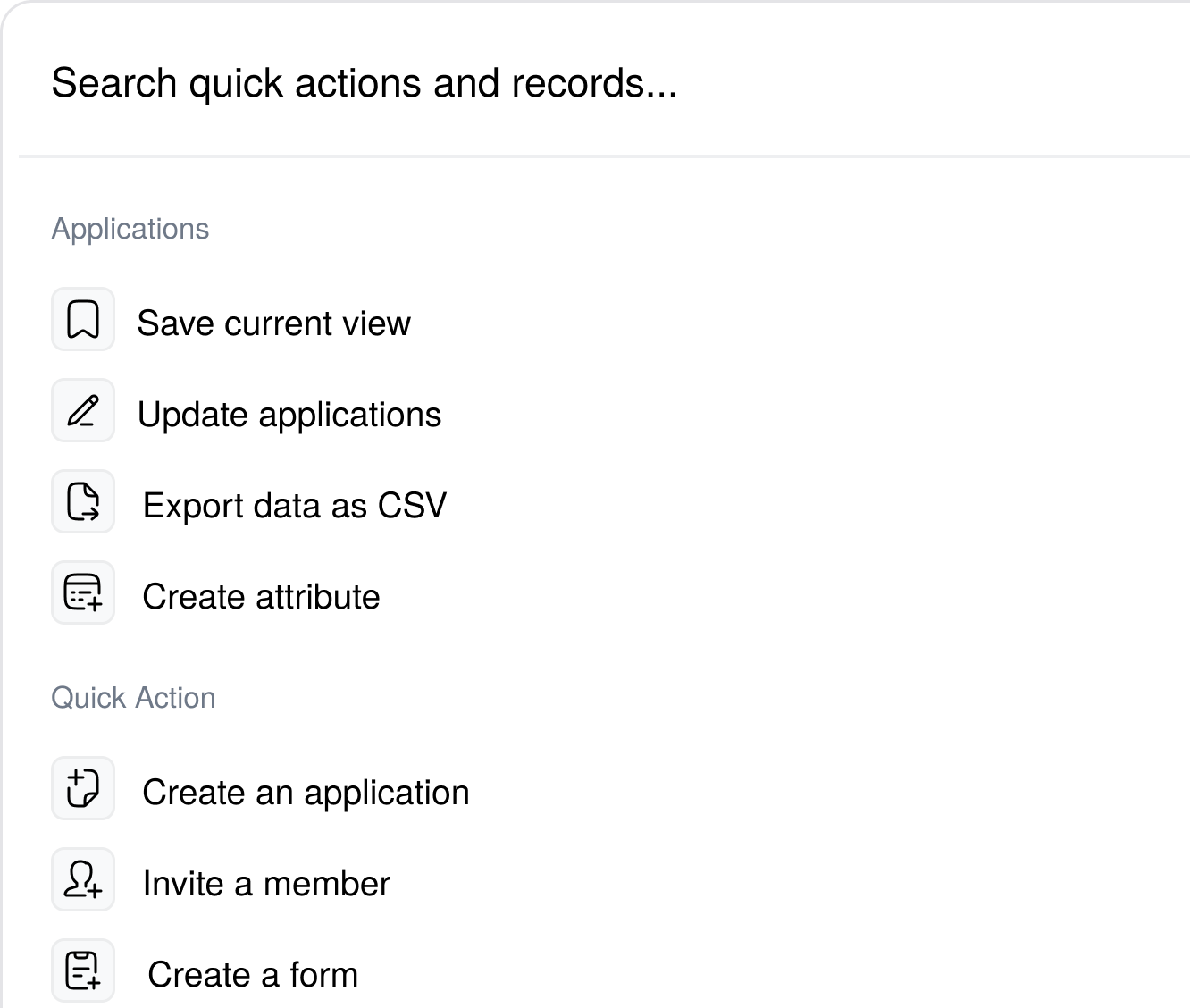 Use CMD+K to navigate anywhere - jump between candidates, execute bulk operations, and send emails in seconds.