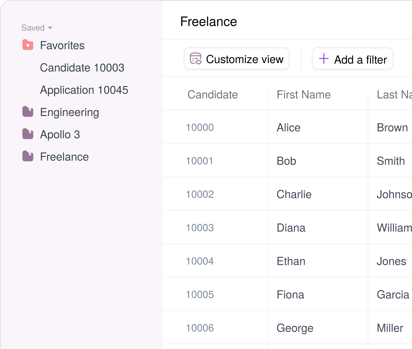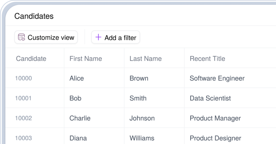 Create and save custom views of your candidates. Switch between them instantly and keep your team aligned.