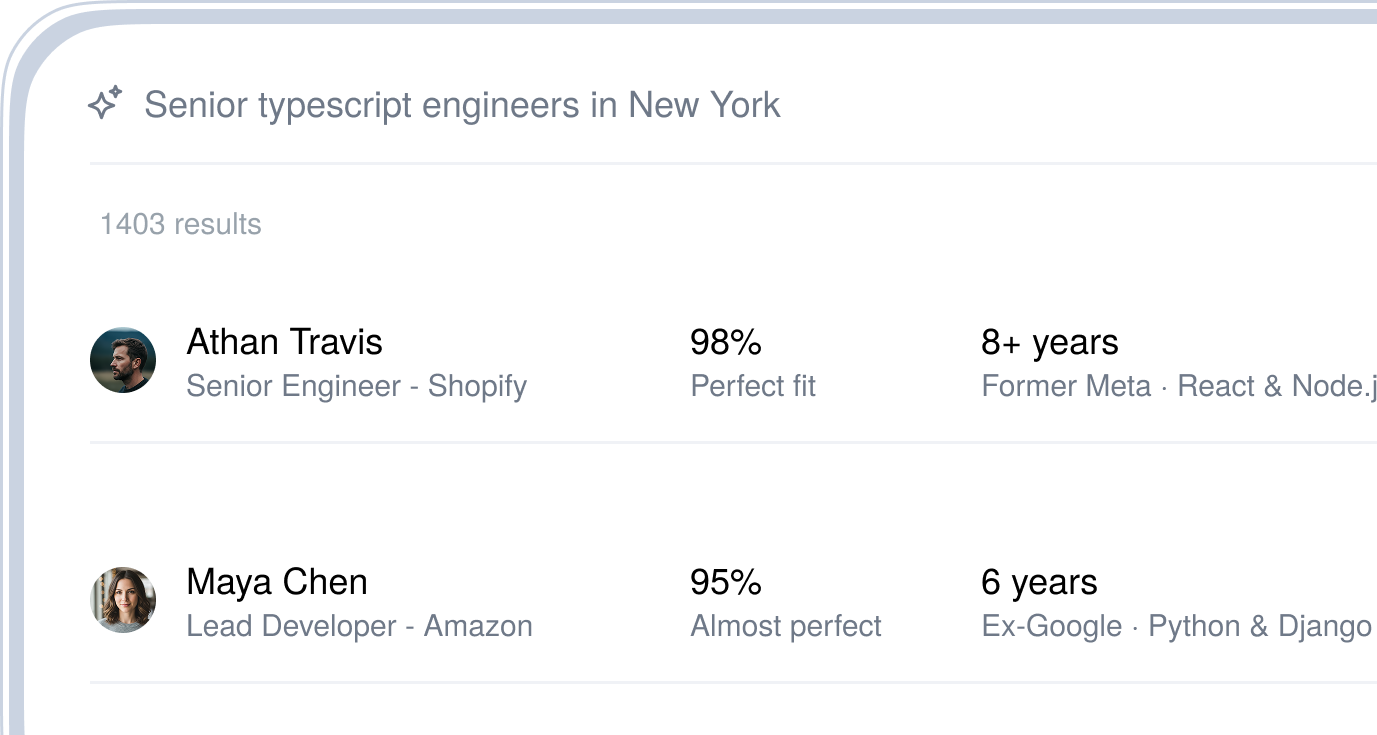 Search your candidate pool and 100M+ profiles using simple, everyday language